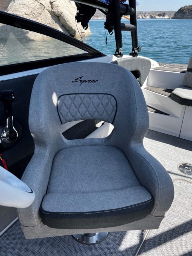 Íntegramente en P.R.F.V. Pisos matrizados. Doble fondo estanco. Luces de navegación y Fondeo. Bomba de achique. Herrajes de norma. Corta corriente. Batería 12 volts. Instalación eléctrica bajo normas. Dirección Fayva. Volante. Parabrisas pintado negro y tonalizado. Botazo acero inoxidable. Tanque interno 120 lts inoxidable. Escalera. Mesa desmontable. Butacas / asiento en L. Relojería completa. Tapicería importada. Posa vasos en acero inoxidable. Diseño GSS (Exclusivo). Guantera, tablero y centro de volante en símil nogal o negro. Bimini tono de proa. Estéreo con parlantes náuticos. Barra ski.